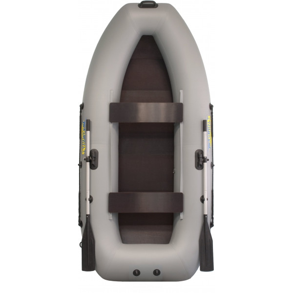 Из водостойкой ламинированной фанеры производятся пайолы. Комплект пайол имеет U-образную форму и включает 7 секций. Пайолы легки в сборке и эксплуатации, в отличие от алюминиевых являются бесшумными, что важно для любого охотника и рыбака. Рюкзак шьется из материала ПВХ 600D, что обеспечивает надежную защиту от различных факторов, в частности влаги и грязи. Рюкзак позволяет осуществлять транспортировку лодки самостоятельно, в одиночку. Алюминиевое весло разборное, состоит из двух частей, что обеспечивает более легкую транспортировку.